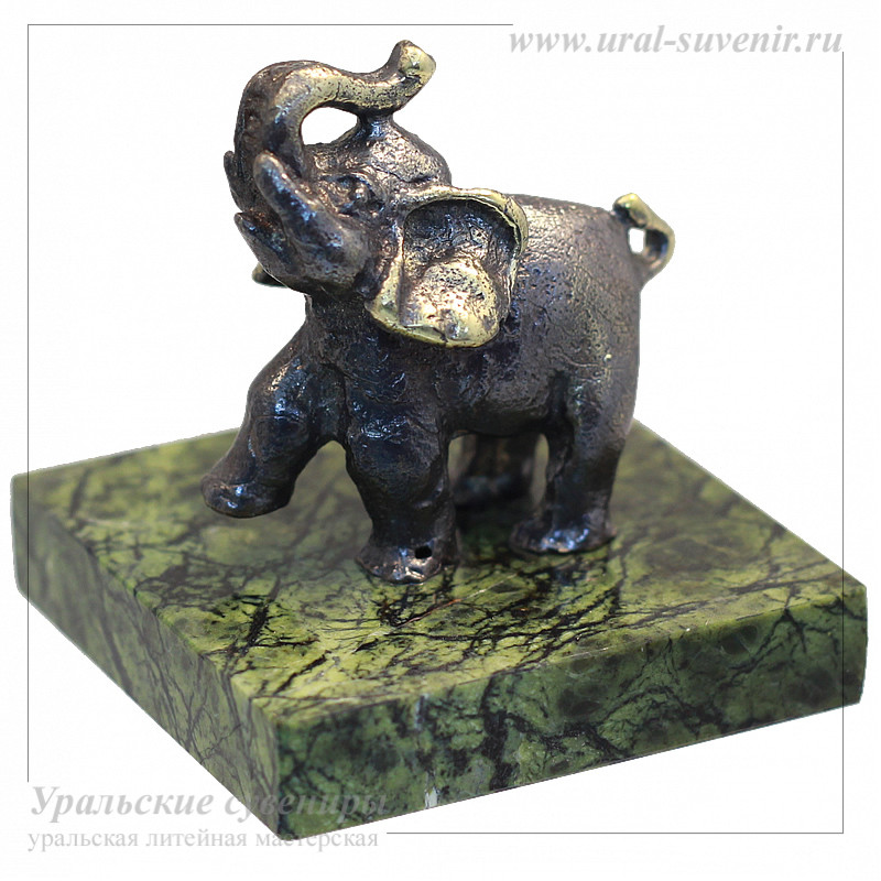 Созданная опытными мастерами Уральской литейной ремесленной мастерской «Уральский сувенир», эта статуэтка воплощает в себе лучшие традиции народного художественного промысла. Каждый слон изготовлен с вниманием к деталям и любовью к ремеслу. Литьевая бронза, использованная в производстве, отличается прочностью и долговечностью, что обеспечивает статуэтке долгий срок службы и сохранение насыщенного цвета. Подставка из змеевика придает изделию дополнительную презентабельность и делает его особенно привлекательным.