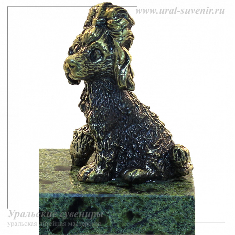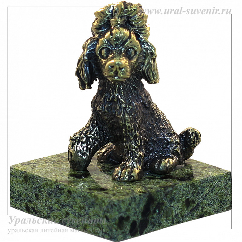 Представляем вашему вниманию уникальную статуэтку собаки Пуделя, выполненную из литьевой бронзы, сидящей на изысканной подставке из светлого змеевика. Этот изысканный предмет искусства имеет размеры 37х37х50 мм и является настоящим произведением ремесла и мастерства.