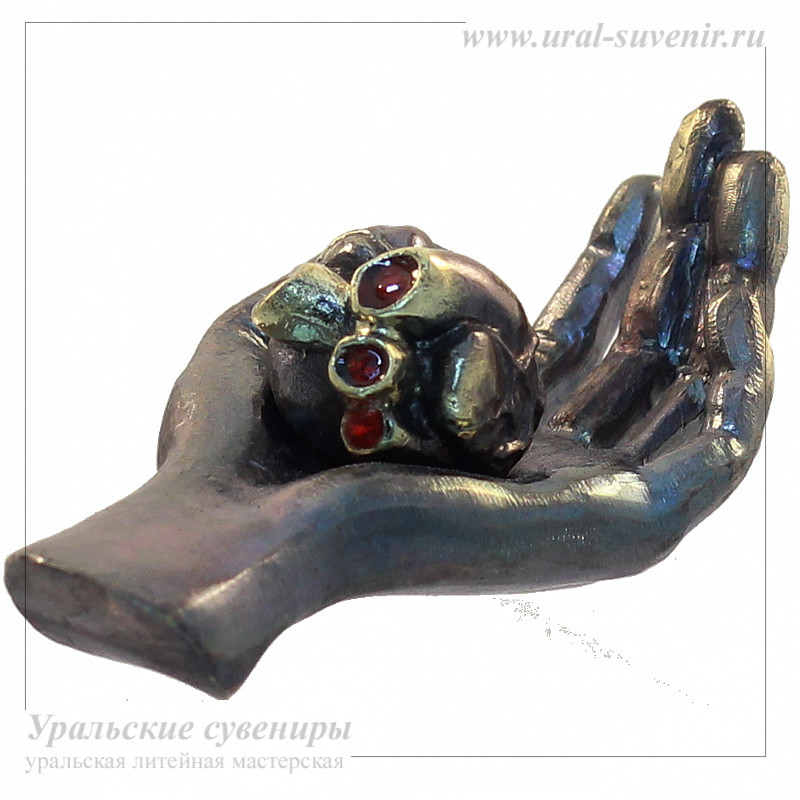 Представляем вашему вниманию уникальный сувенир - Рука с сердцем из литьевой бронзы с вставленными в сердце рубинами. Этот изящный предмет искусства имеет размеры 33х65х25 мм, что делает его удобным для хранения и демонстрации.