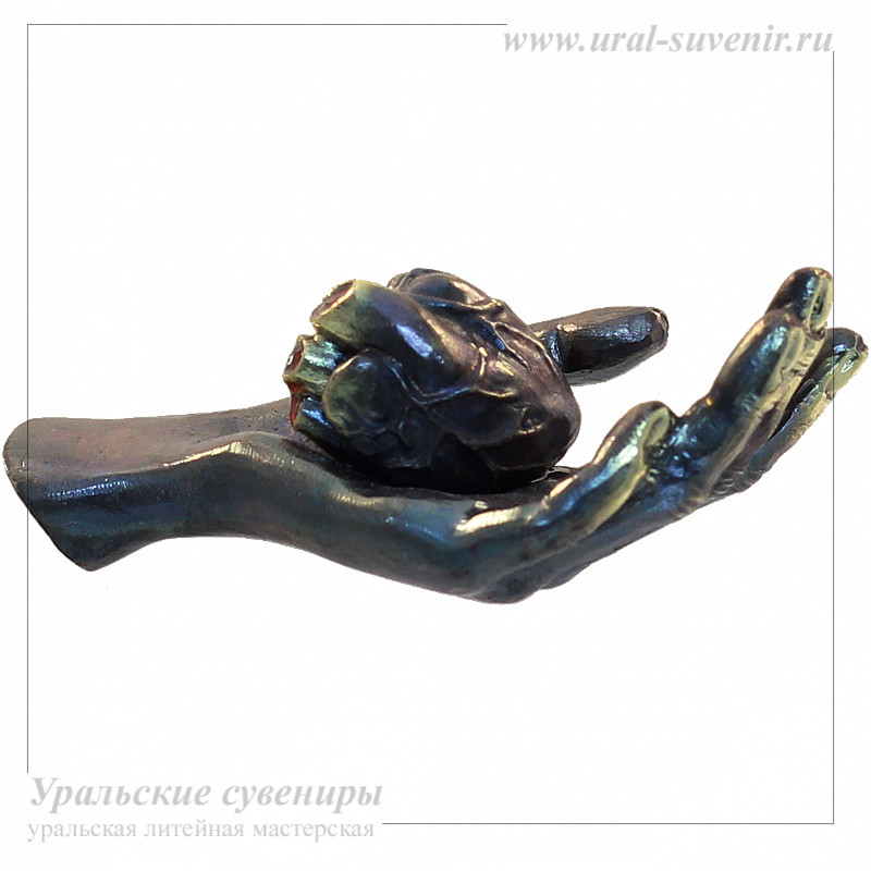 Рука с сердцем является символом любви, нежности и сострадания. Сердце, украшенное рубинами, придает этому сувениру особую изысканность и блеск. Бронза, используемая для изготовления этого товара, придает ему прочность и долговечность, что позволяет сохранить его красоту на долгие годы.